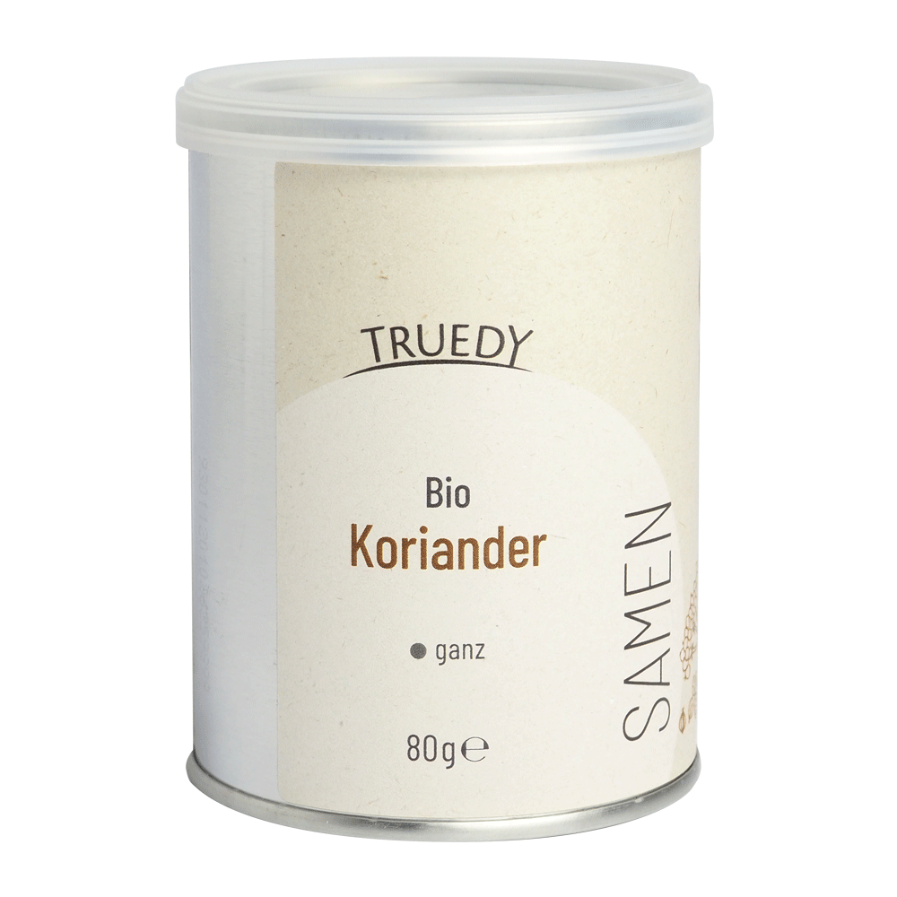 Koriander sind die Körner der Pflanze Coriandrum sativum aus der Doldenblütlerfamilie. Trocken geröstet entfalten sie ein kräftiges, sehr intensives Aroma, das an Orangenschale erinnert.