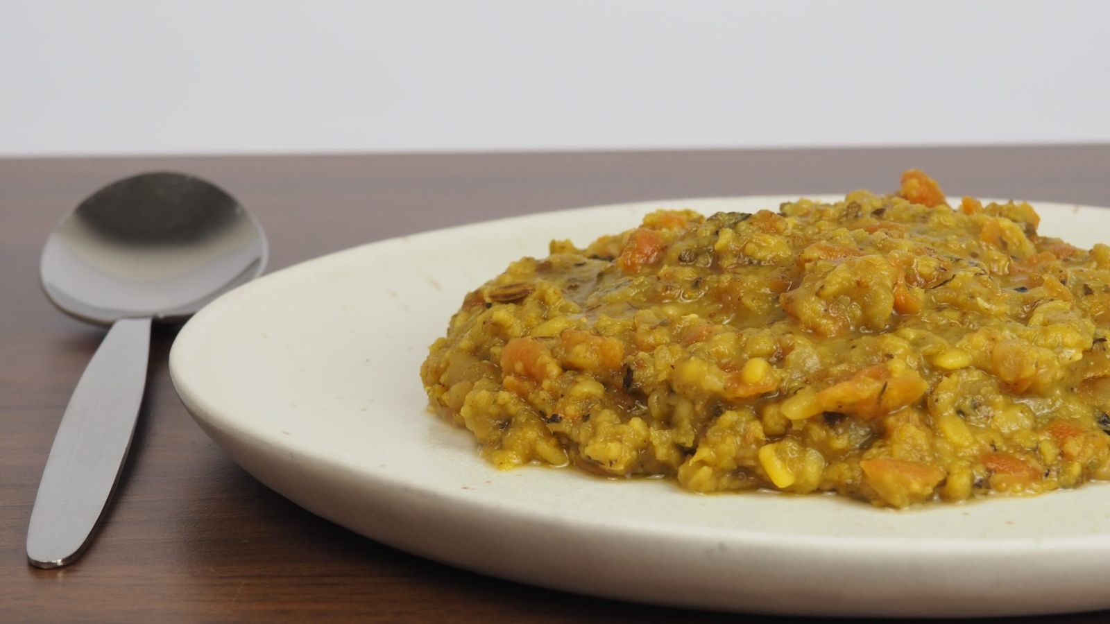 Dal-Gerichte funktionieren mit verschiedenen Hülsenfrüchten. Du kannst also munter ausprobieren. Die in diesem Rezept verwendeten Mungbohnen sind geschält und halbiert. Dadurch sehen sie wie gold-gelbe Linsen aus und werden manchmal auch so genannt, obwohl es keine echten Linsen sind. Solche Mungbohnen eignen sich wundervoll für Dal-Gerichte. Man nennt sie auch, genau wie das Gericht, Mung Dal. Sie haben einen angenehm mild-nussigen Geschmack und sind besonders leicht handzuhaben, weil sie weichkochend sind. Du musst sie also nicht vor dem Kochen einweichen. Mit wechselndem Gemüse deiner Wahl, kannst du immer wieder ein neues Dal zaubern. Und so einfach geht es: